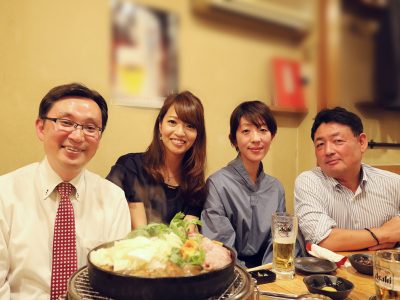 オーナー様3人と当社営業担当の村石が新橋の牛鍋屋でマンション経営談義に花を咲かせました。